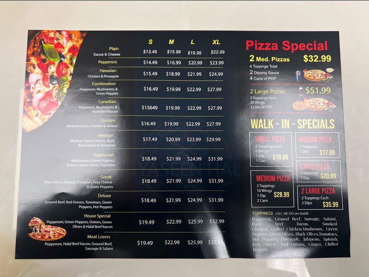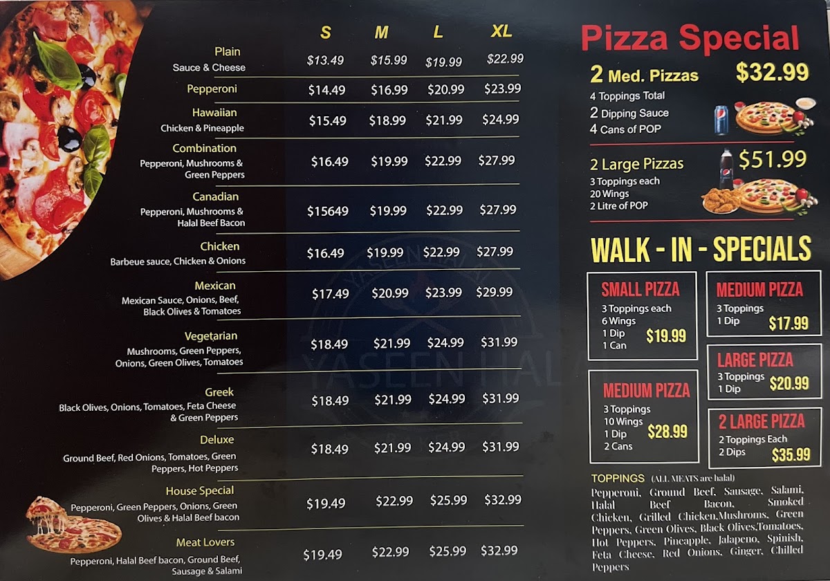 Introducing the Menu at Yaseen Halal Pizza & Bakery